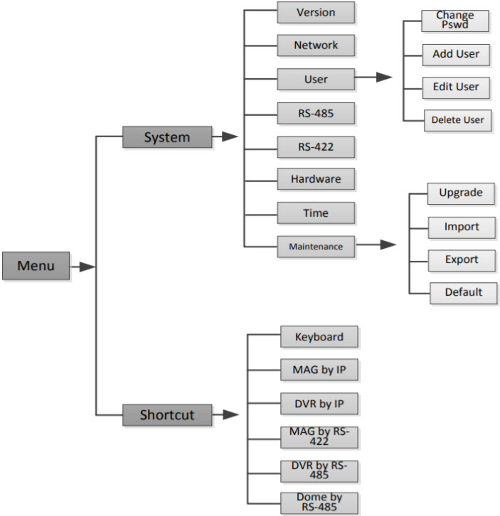 Menu cấu hình hệ thống trực tiếp trên bàn điều khiển sau khi Login