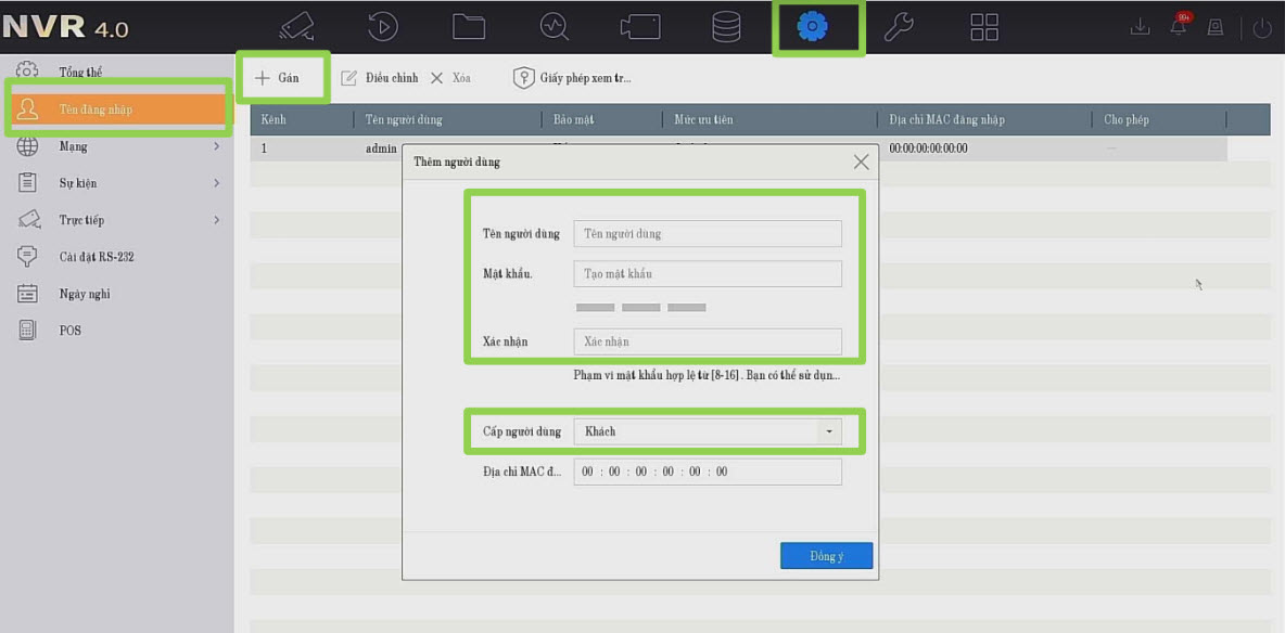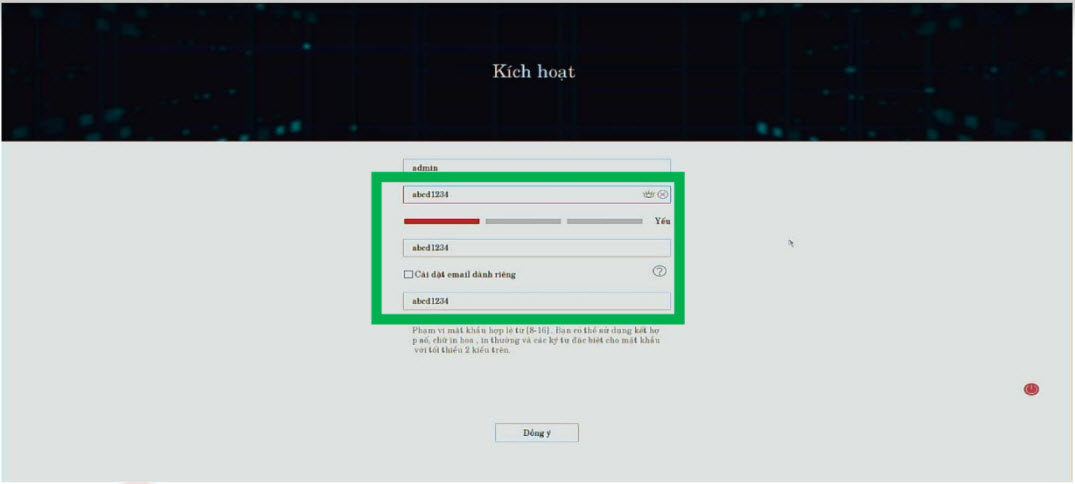 Lưu ý nếu đặt mật khẩu đầu ghi có chữ admin thì khi gán sẽ báo lỗi kích hoạt camera lên xong đặt IP rồi gán vào đầu ghi với mật khẩu của camera (Liên hệ kỹ thuật lắp đặt để được hướng dẫn).