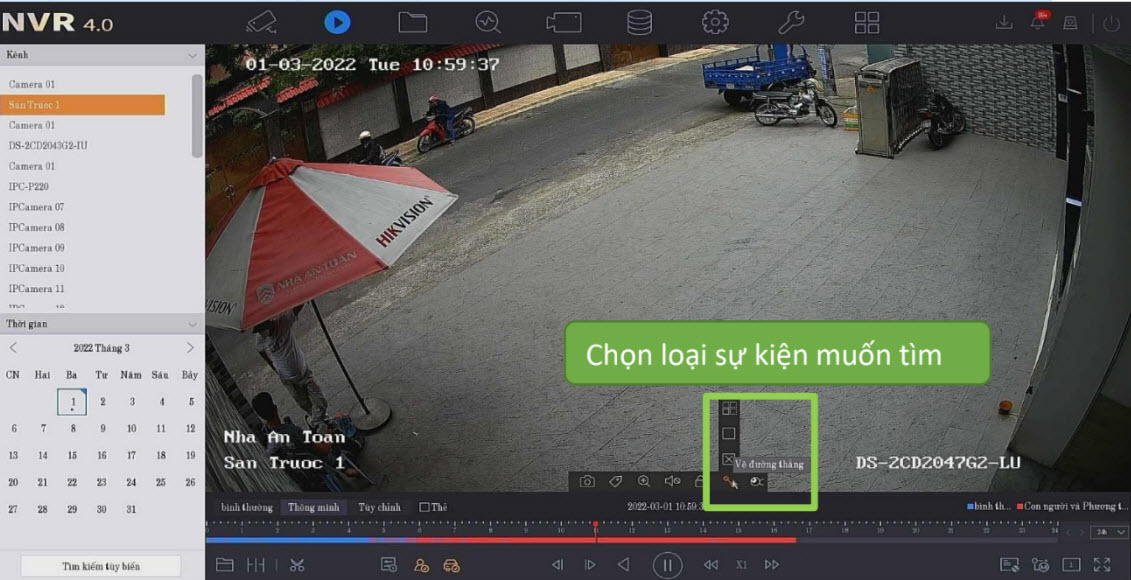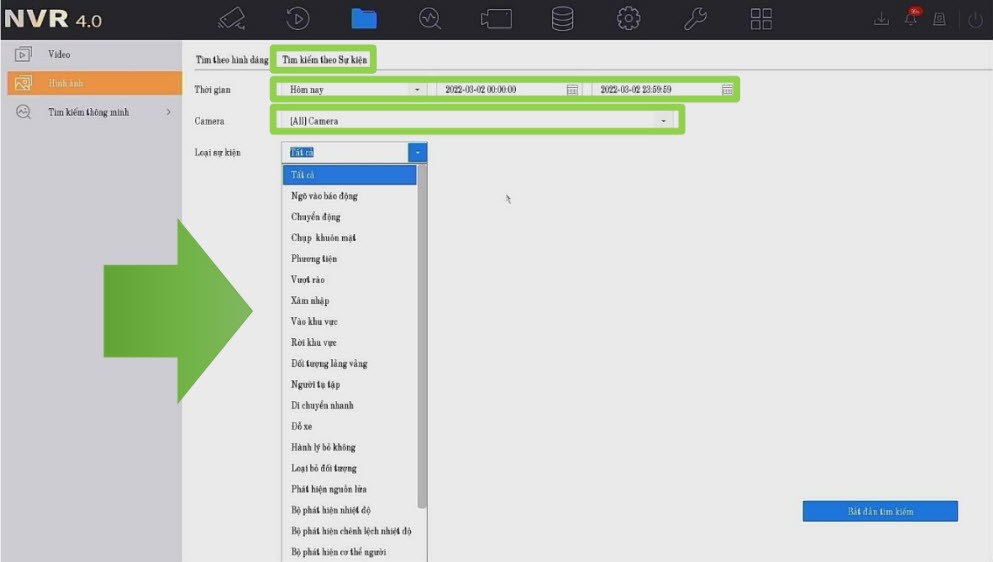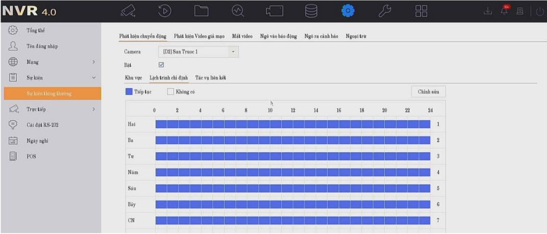 Sự kiện là ghi hình khi có 1 sự kiện bất kì: vượt vào, alarm input, xâm nhập,...