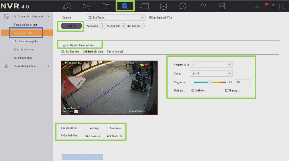 Bật phát hiện vượt rào.