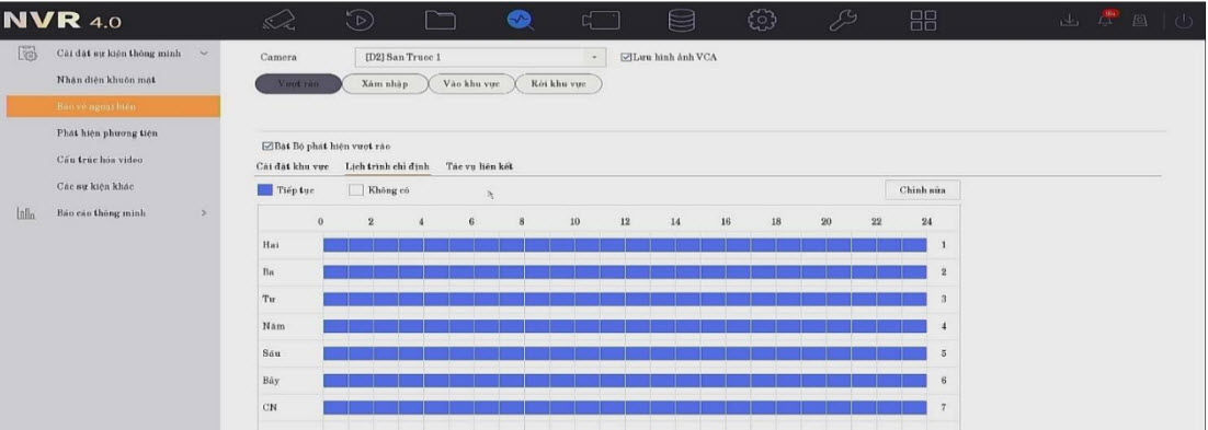 để vào cài đặt các sự kiện thông minh Chọn Bảo vệ ngoại Biên Chọn Vượt rào
