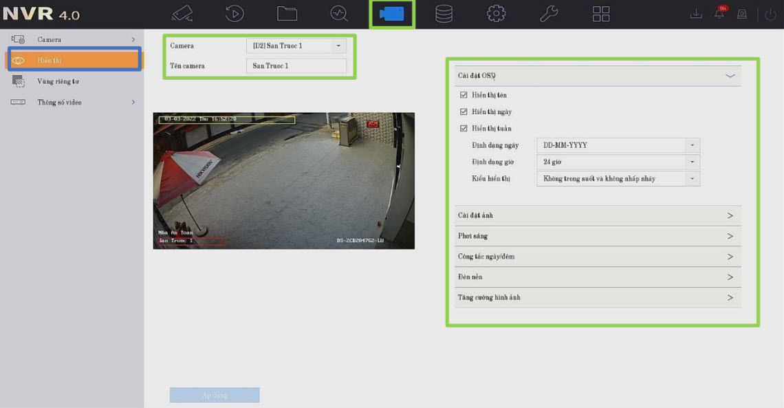 Cài đặt thông số video của camera
