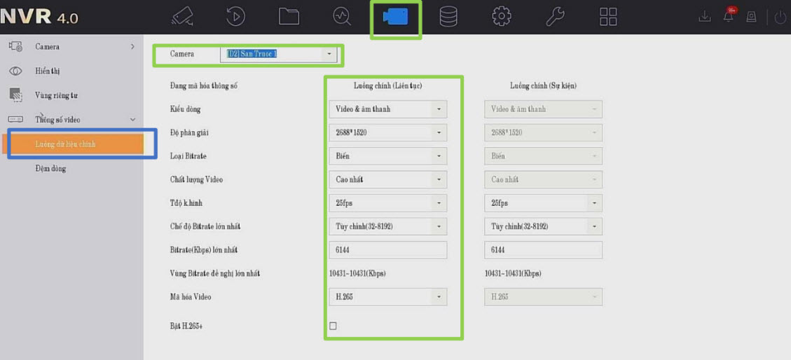 Luồng chính: Là luồng ghi hình đầy đủ độ phân giải camera.