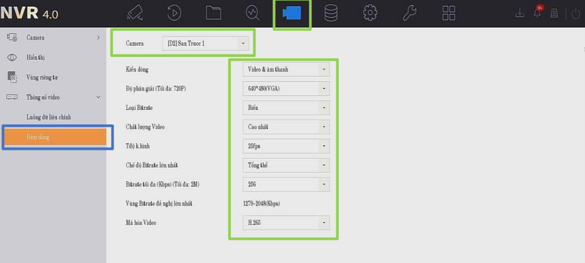 Luồng dữ liệu: Chọn luồng ghi hình (luồng chính là hình đẹp đủ độ phân giải).