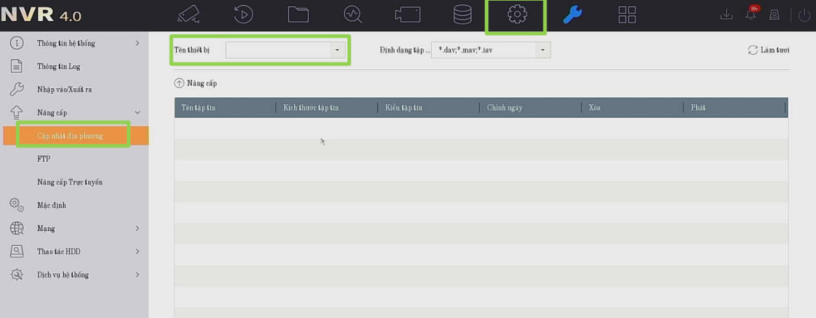 Phần dưới chọn File Firmware của đầu ghi rồi chọn Nâng cấp