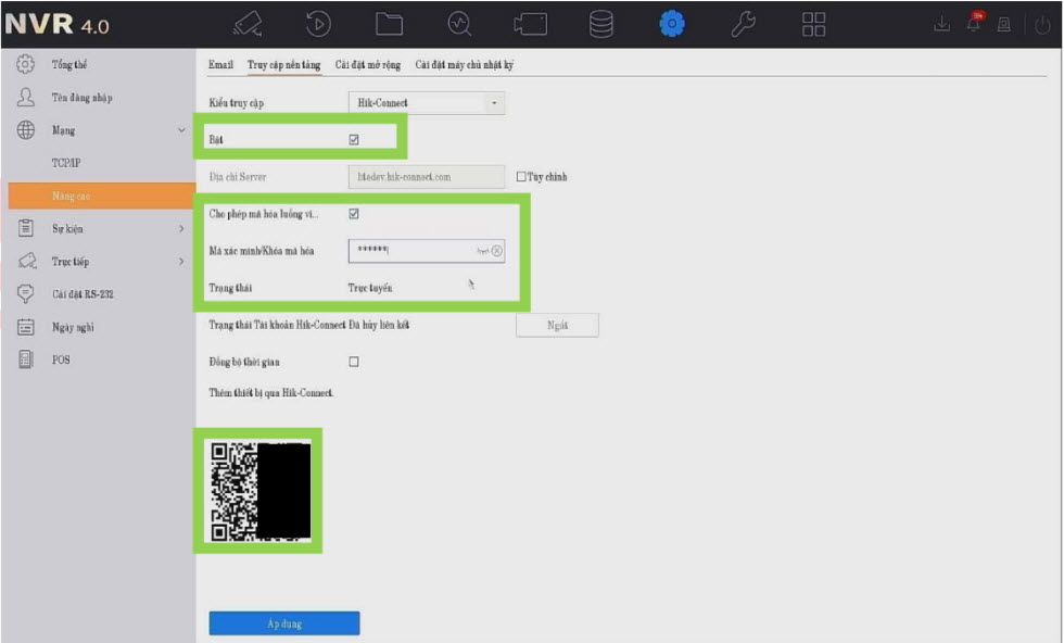 Mã QR trên đầu ghi: dùng Hik-connect trên điện thoại để thêm vào tài khoản Hik-connect.