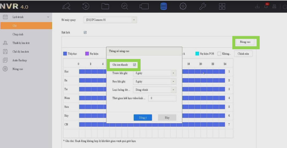 Cài đặt lịch ghi hình