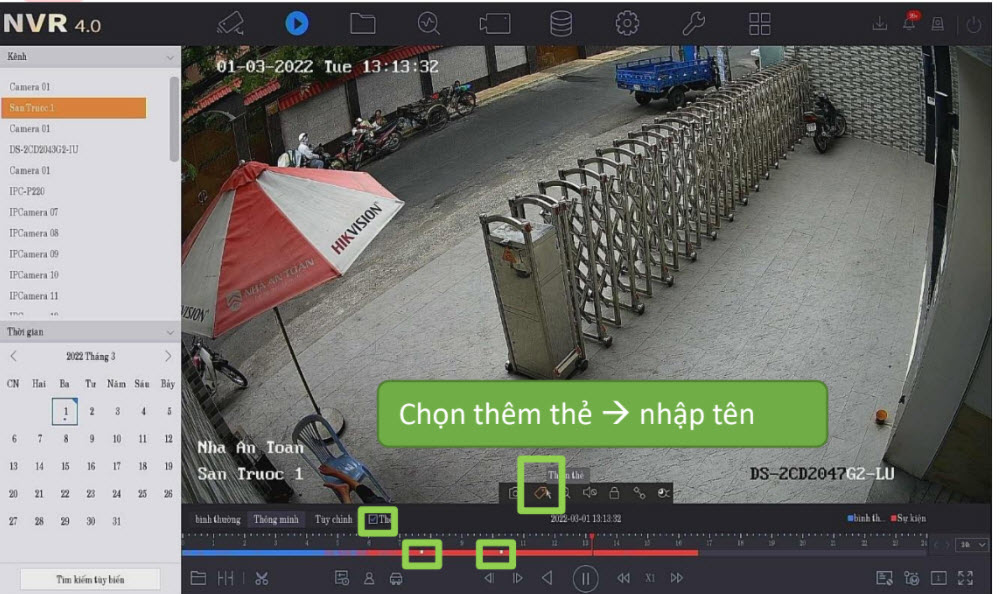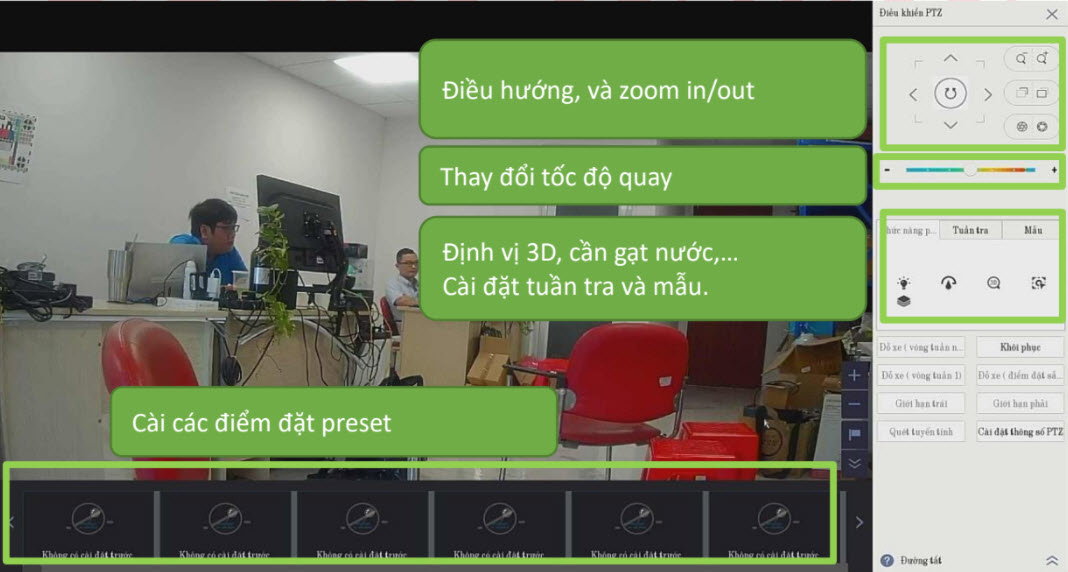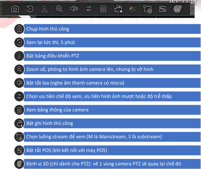 Đưa chuột vào mỗi camera sẽ hiện các ICON lên
