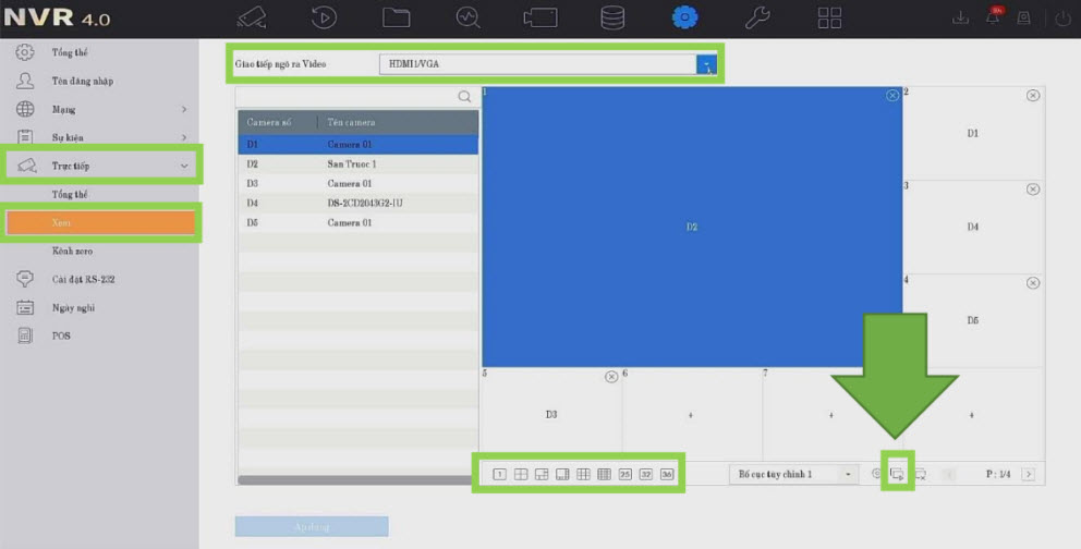 để thêm các camera vào khung chia, tự động thêm theo thứ camera từ Camera số 1 --> đến camera cao nhất