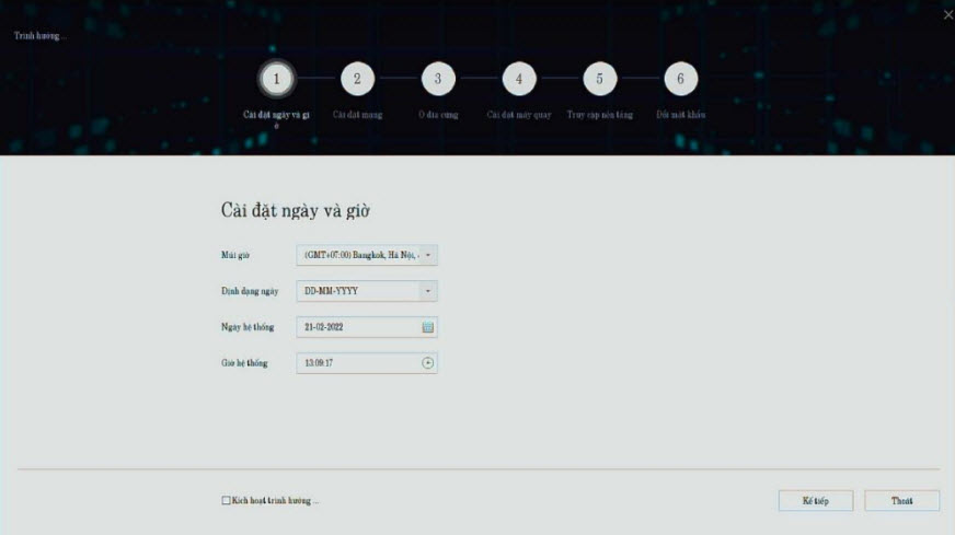 Chọn cài đặt ngày giờ rồi chọn Kế tiếp