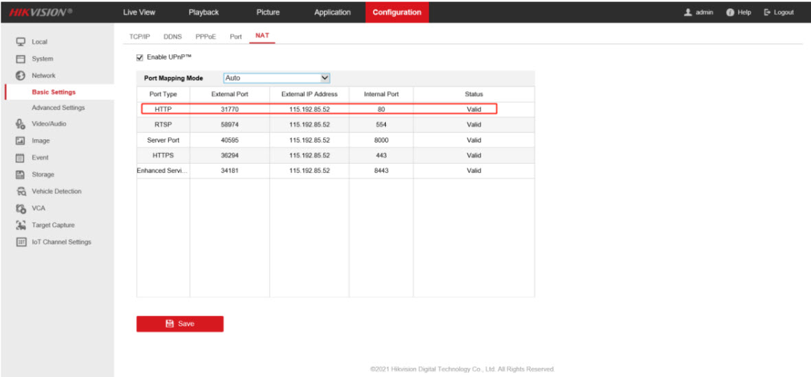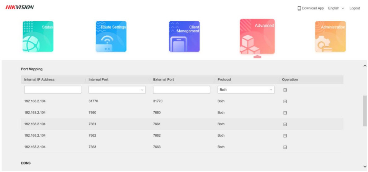 4. Mở port trên Modem/Router (ví dụ giao diện router Hikvision)