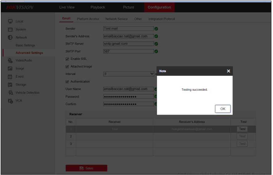 HƯỚNG DẪN THIẾT LẬP THÔNG BÁO QUA EMAIL CHO CAMERA IP HIKVISION