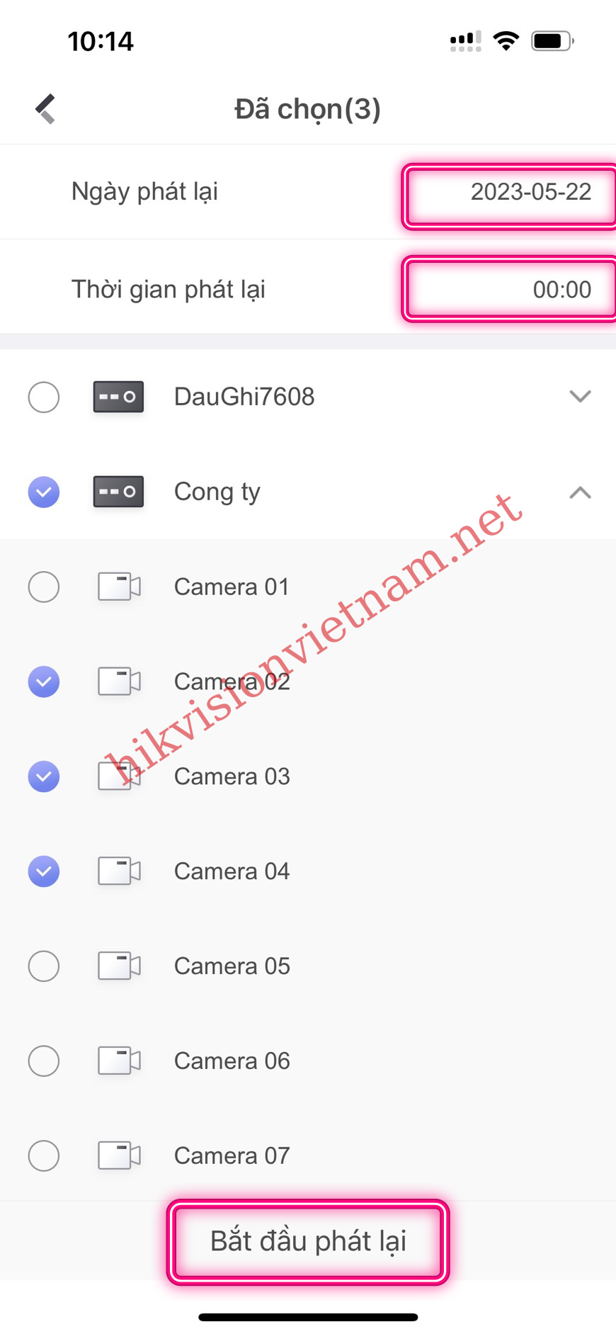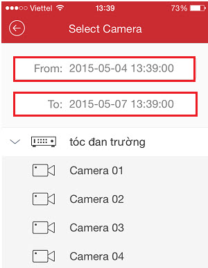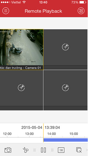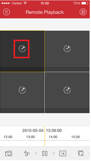 Chọn các camera cần xem lại (tối đa hệ thống cho phép xem lại cùng lúc 4 camera để đảm bảo màn hình quan sát trên điện thoại không bị quá nhỏ)