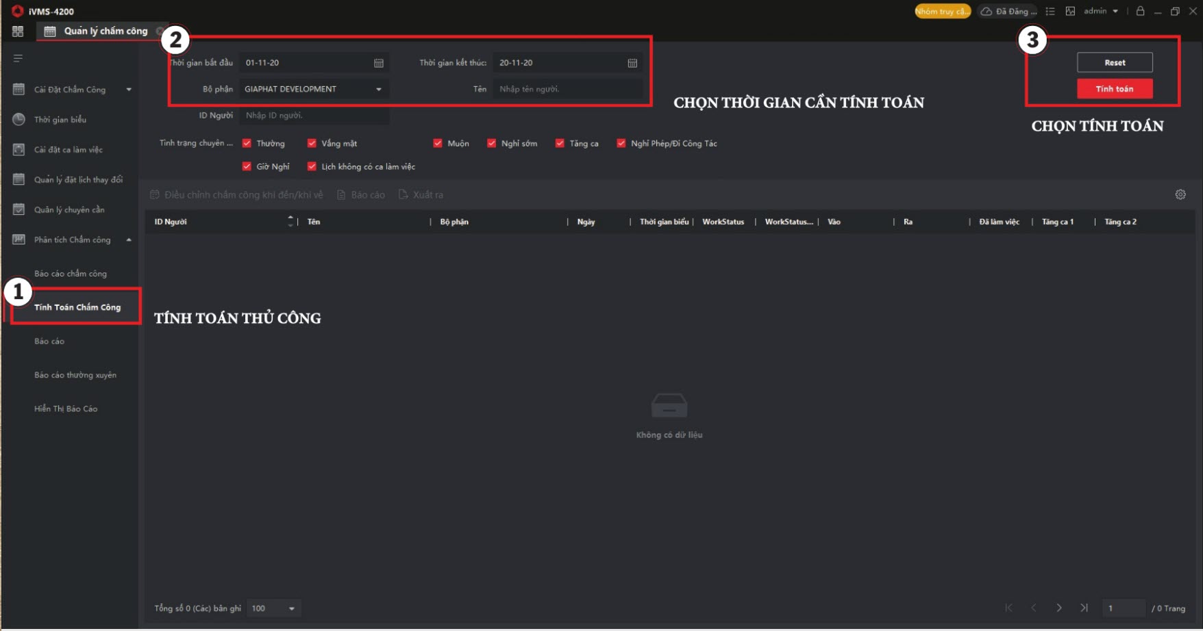 Lựa chọn bộ phận cần thu thập dữ liệu chấm công.