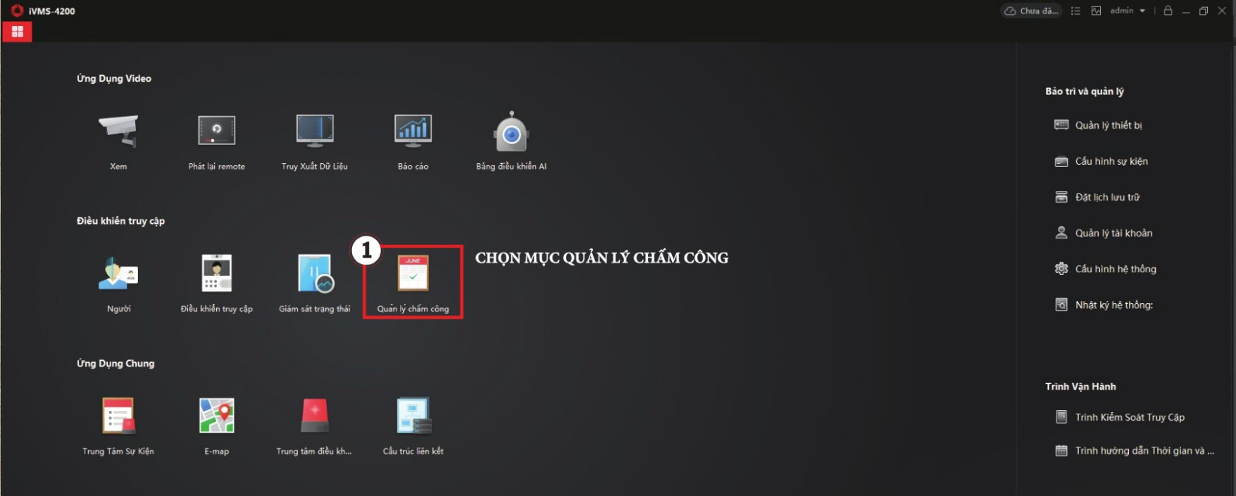 Người sử dụng cần truy cập vào hệ thống quản lý chấm công của máy Hikvision. Đây là bước đầu tiên để có thể tiến hành các thao tác thu thập dữ liệu.