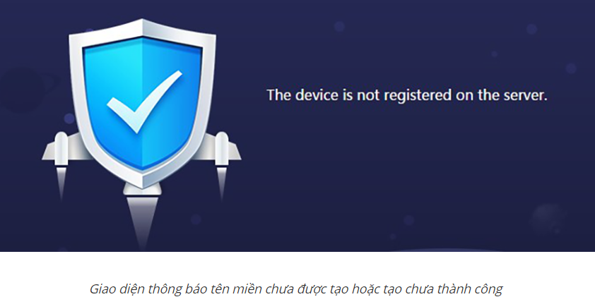 Trường hợp 3: Sau khi gõ tên miền theo cú pháp: www.cameraddns.net/tên miền của bạn → hiện ra trang thông báo The device is not registered on the server → tên miền chưa được tạo thành công → tạo lại theo 5 bước đã hướng dẫn ở phần nội dung số 2.