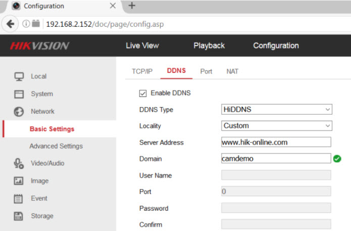 Đặt tên miền cho thiết bị ở tab DDNS. Lưu ý: tên miền viết liền, chữ thường, chữ và số đều được.