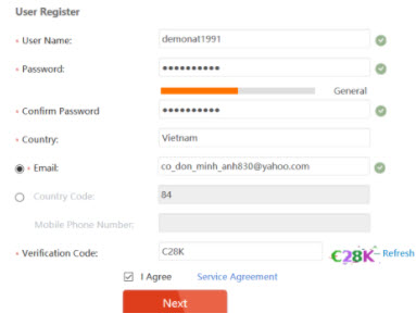Điền vào Verification code nhận từ mail của hệ thống gởi qua mail mình đăng ký.