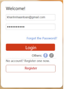 Nếu như ta đã có tài khoản thì vào phần Login để đăng nhập, nếu chưa thì ta vào Register để đăng ký.
