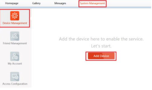 Chọn System Management -> Device Management -> Add Device để thêm thiết bị vào Cloud