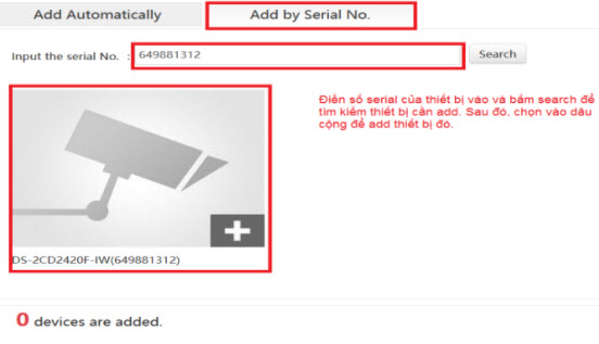 Add by serial: add bằng cách điền số serial của thiết bị.