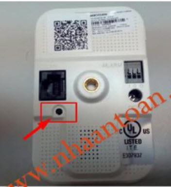 Nhấn giữ nút reset (trên hình) và cắm nguồn vào.