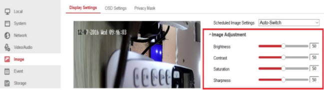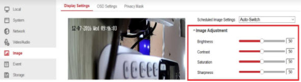Vào Image để điều chỉnh nhưng thông số hình ảnh trên camera. (Ví dụ như độ sáng, độ tương phản, sắc nét của hình ảnh...