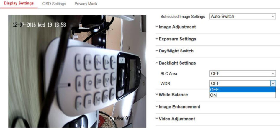 Ngoài ra, ta còn có thể bật tắt chức năng chống ngược sáng WDR.