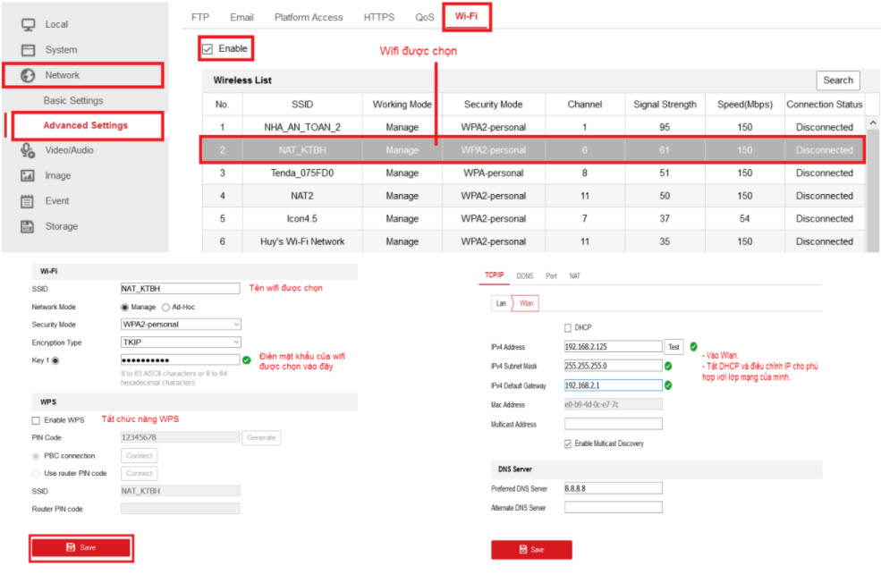 Đổi IP thiết bị cùng với lớp mạng của mình. Truy cập vào địa chỉ IP của thiết bị trên trình duyệt web và làm như trong hình.