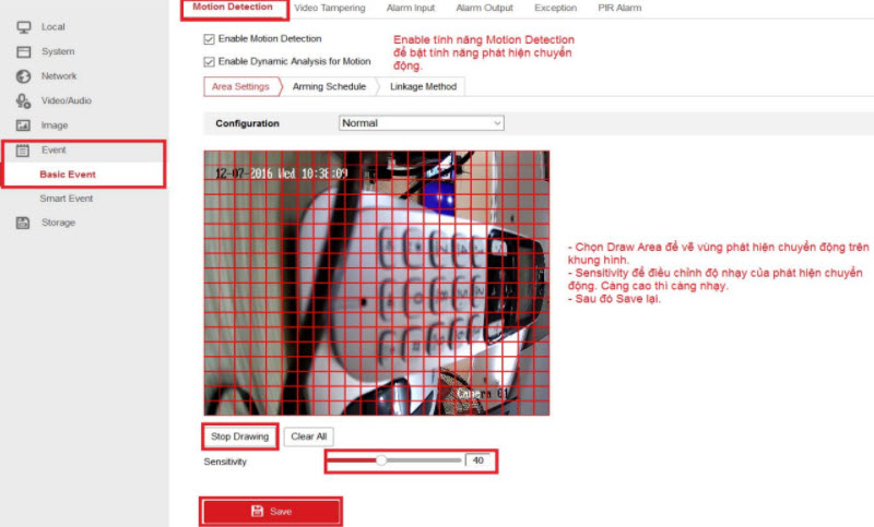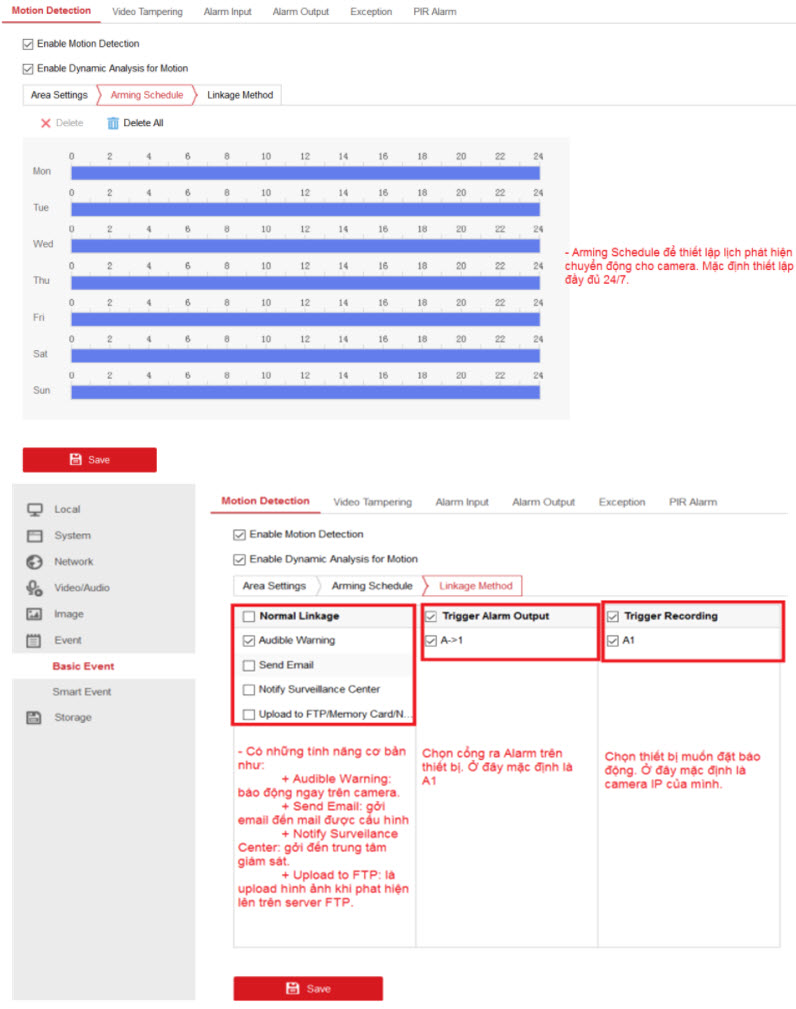 CẤU HÌNH EVENT CHO CAMERA (VÍ DỤ MOTION DETECTION)
