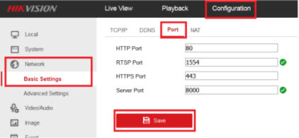 Chỉnh port cho thiết bị sao cho không trùng với các thiết bị khác. Port RTSP nên chỉnh lớn hơn 1024. Chúng ta phải NAT 3 port HTTP, Server, RTSP
