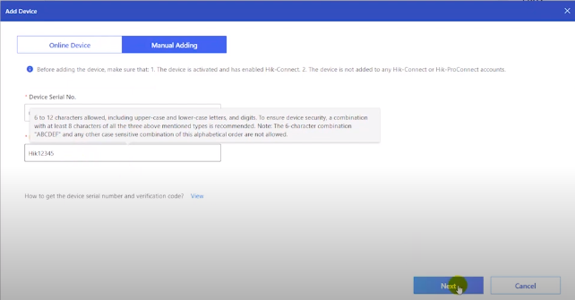 Trước khi thêm thiết bị hãy chắc chắn là thiết bị được kích hoạt có thể hoạt động với Hikconnect, thứ 2 là thiết bị này chưa từng được thêm vào tài khoản Hik Proconnect hoặc Hikconnect