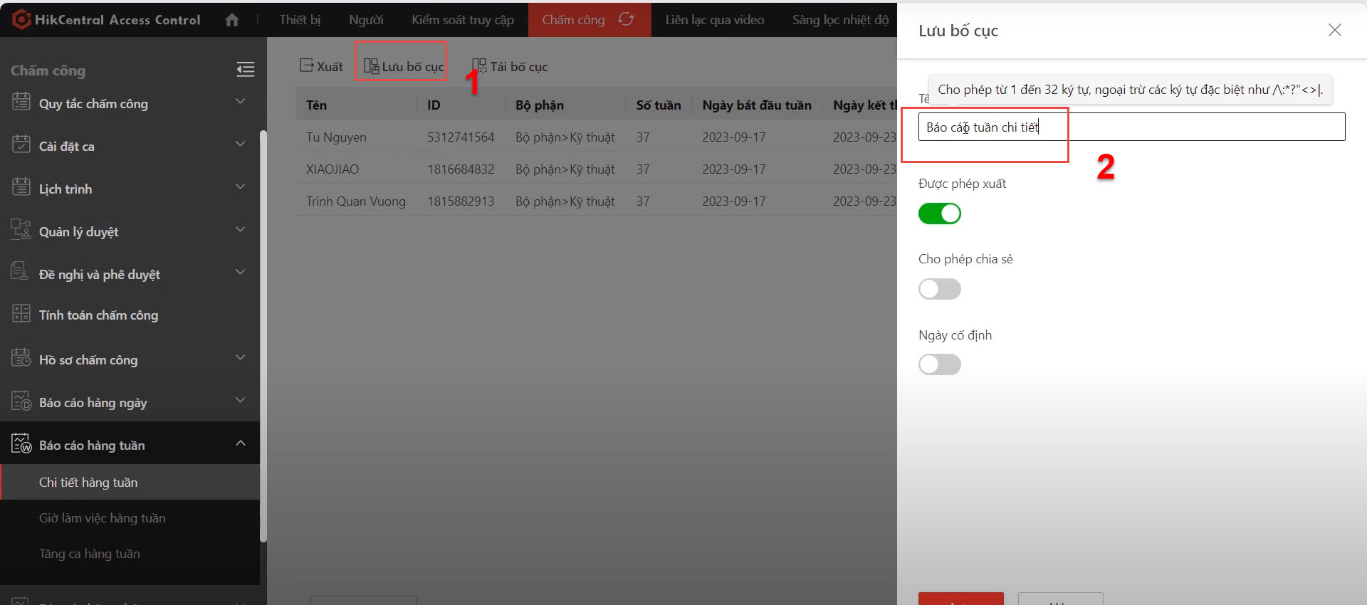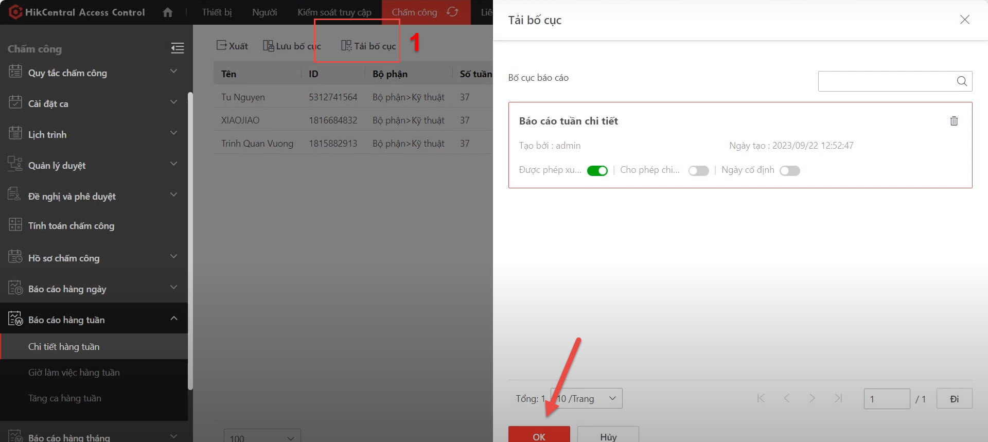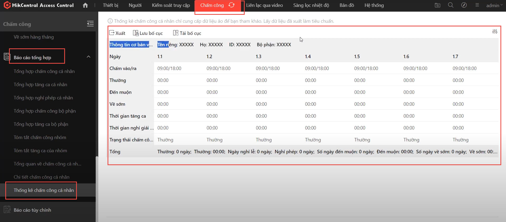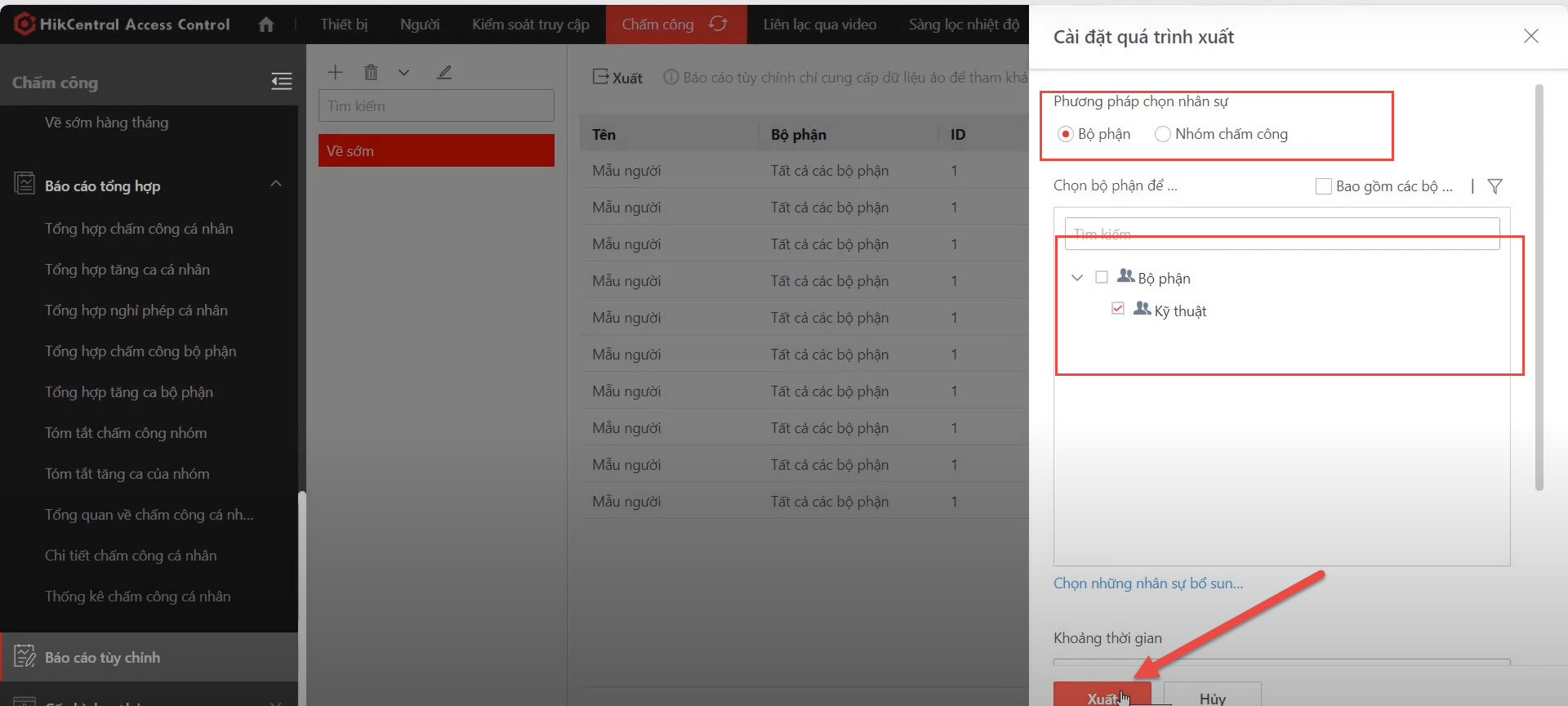 Hướng dẫn báo cáo chấm công trên HCAC, cung cấp các bước để tạo và xuất báo cáo chi tiết về giờ làm việc, tăng ca và sự vắng mặt của nhân viên