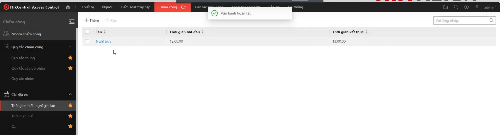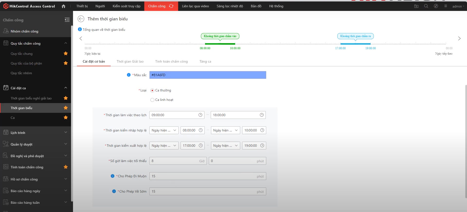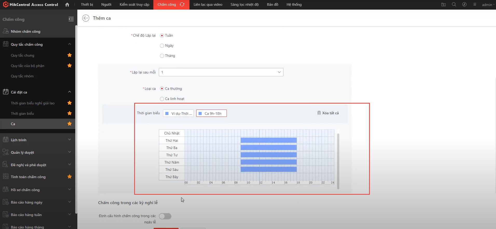 Như vậy, bạn đã tạo thành công một ca hành chính từ 9:00 đến 18 giờ.