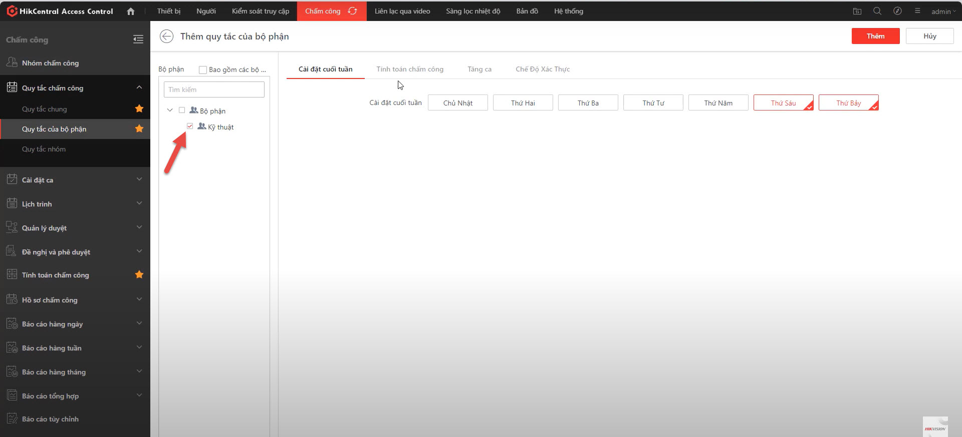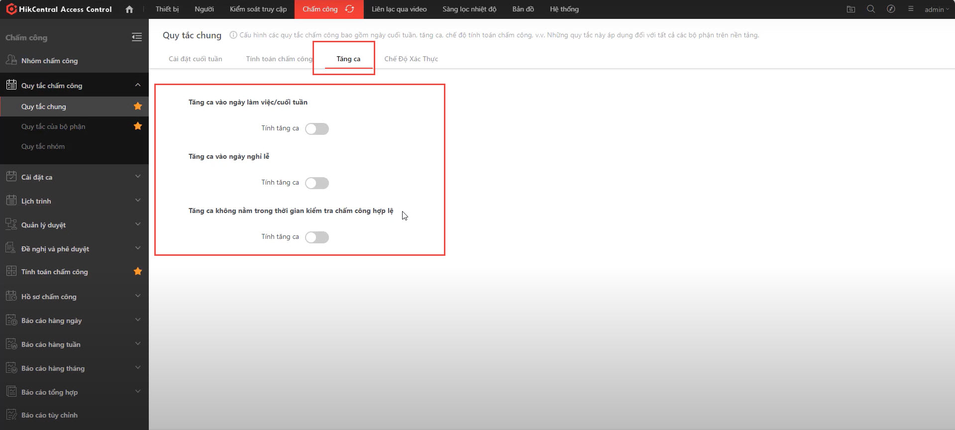 Thiết lập quy tắc tăng ca và chế độ xác thực nếu cần thiết.