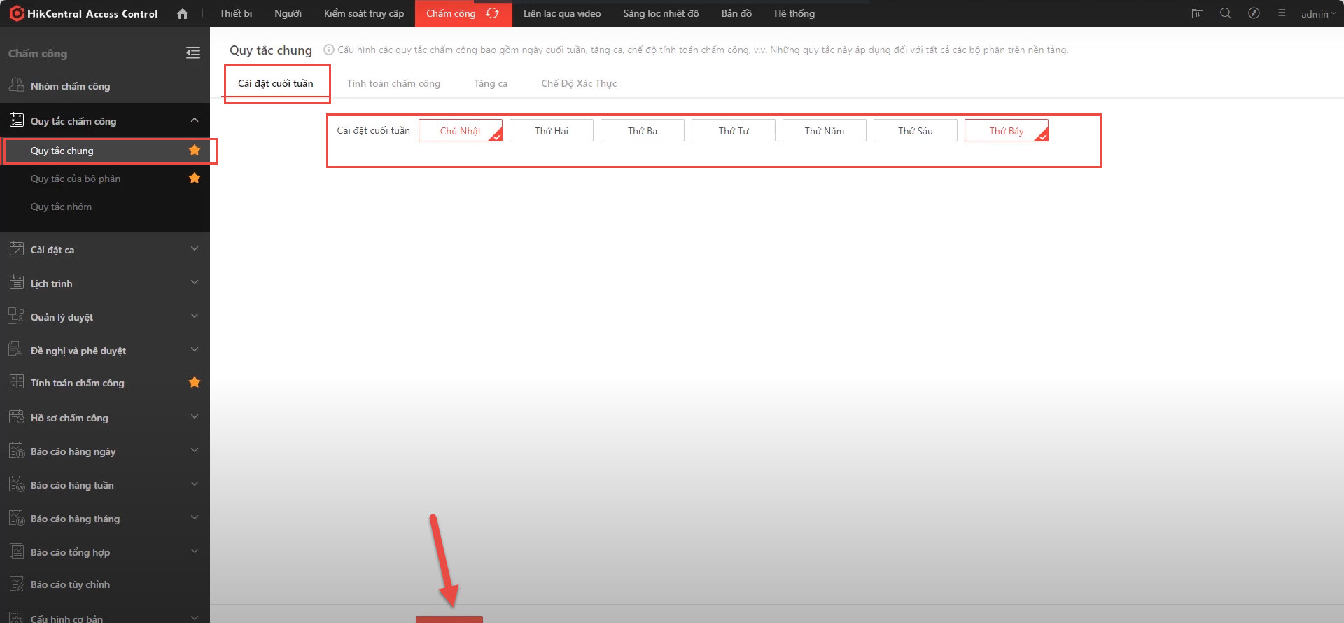 Thiết lập ngày cuối tuần tùy theo quy định của công ty: Ví dụ: Thứ Bảy và Chủ Nhật là ngày cuối tuần.
