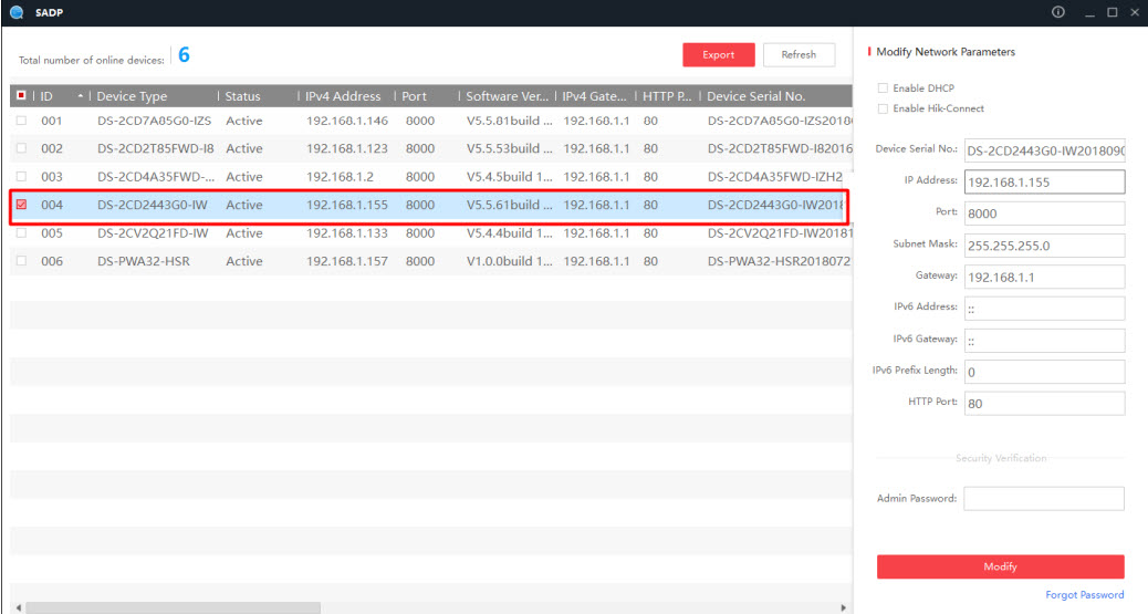 1) Rút cáp giữa camera và bộ định tuyến. Khi chúng ta chạy SADP, WLAN IP sẽ được hiển thị trong phần mềm