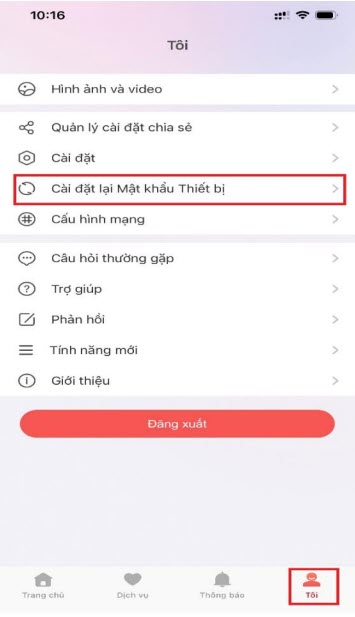 4. Trên phần mềm Hik-connect ,vào mục Tôi và chọn cài đặt lại mật khẩu thiết bị