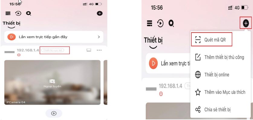 Vui lòng nhấn vào biểu tượng '+' ở góc trên bên phải rồi quét mã QR để thêm thiết bị