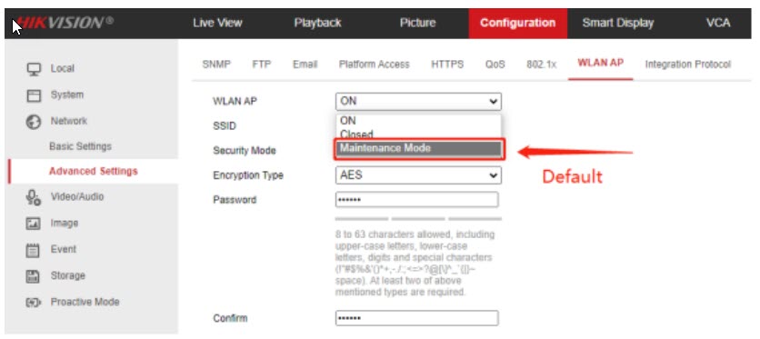 Camera mặc định ở chế độ bảo trì. Ở chế độ này, sau khi bật nguồn, WLAN AP sẽ bật trong 5 phút.