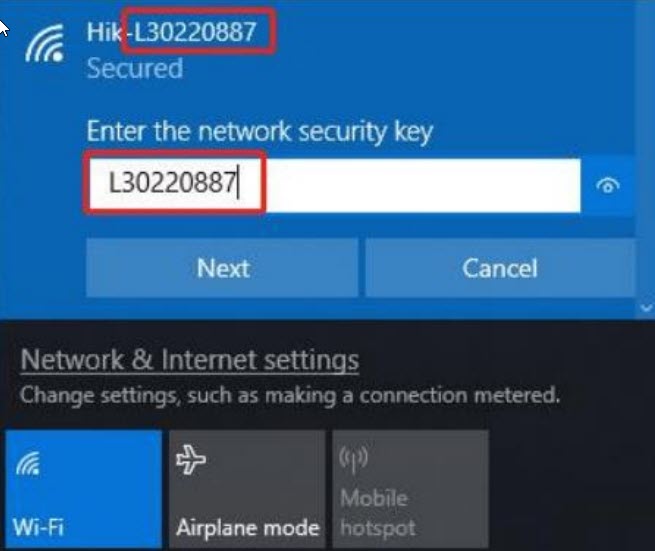Khi có thể tìm thấy AP WLAN của camera, hãy kết nối với AP. Mật khẩu mặc định của WLAN AP là số Serinal của camera.