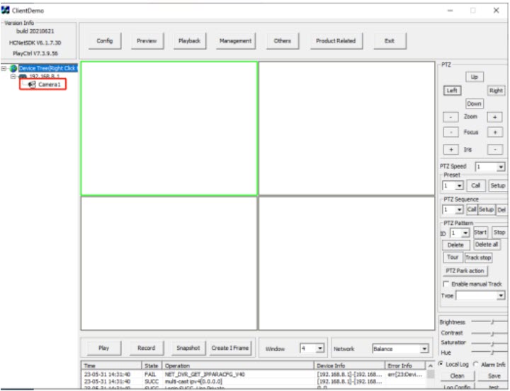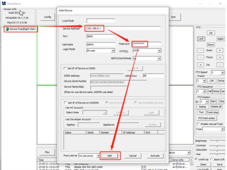 1 Click chuột phải để thêm camera, IP camera là 192.168.8.1