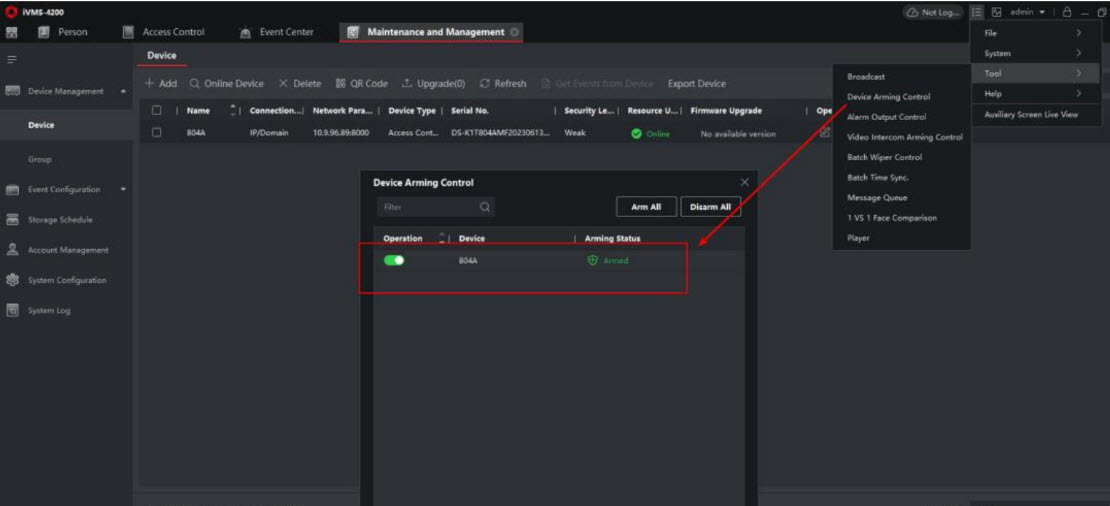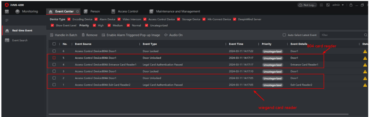 f) Kiểm tra, xem sự kiện thực tế từ trung tâm sự kiện, đảm bảo thiết bị đã được kích hoạt cho 4200 này. Nếu không được kích hoạt, hãy thông báo cho IP kích hoạt để hủy kích hoạt hoặc xóa nó. Sau đó, bạn có thể thêm lại.