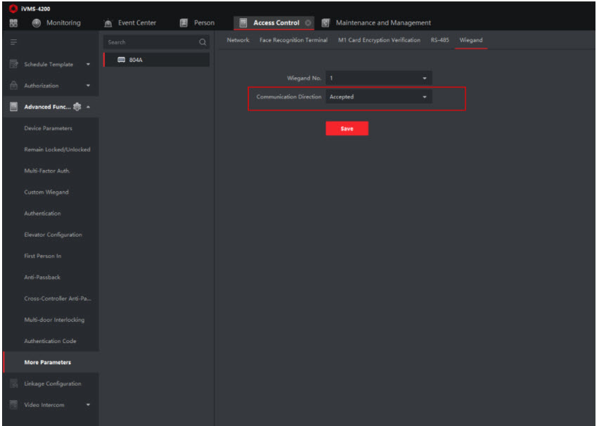 c) Kiểm tra hướng giao tiếp Wiegand 804A và chế độ xác thực.