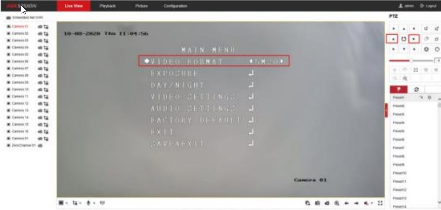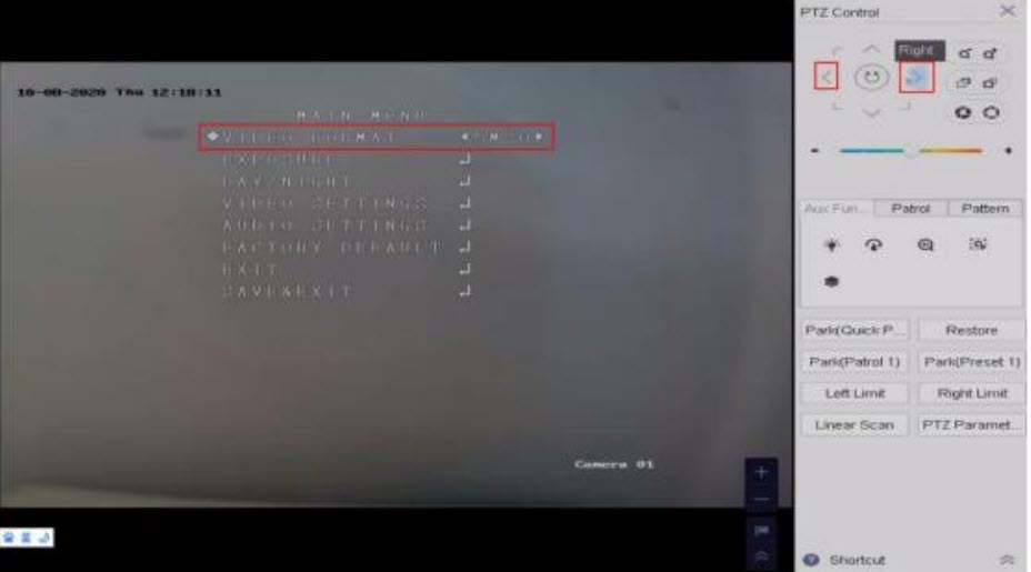(3) Trong MAIN MENU – VIDEO FORMAT, bạn có thể thay đổi độ phân giải của camera bằng cách nhấp vào biểu tượng RIGHT hoặc LEFT.