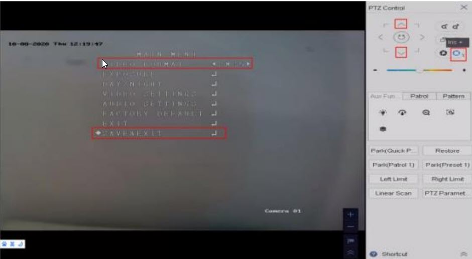 (3) Sau đó, nhấp vào biểu tượng UP hoặc DOWN để LƯU & THOÁT, nhấp vào IRIS+ để lưu cấu hình và tồn tại menu OSD.