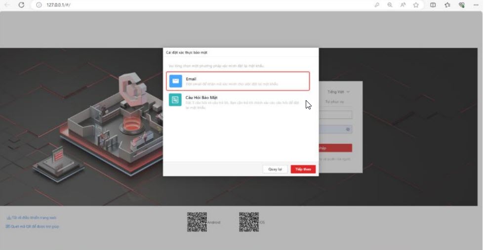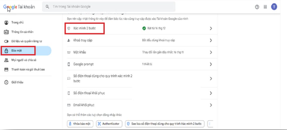 Bước 2: Chọn cài đặt xác thực bảo mật bằng Email.