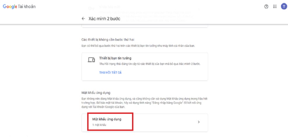 Ta đăng nhập mail cần đăng ký sau đó vào phần Quản lý tài khoản Google của bạn --> Bảo mật --> Xác thực 2 bước --> Tích chọn vào Mật khẩu ứng dụng.