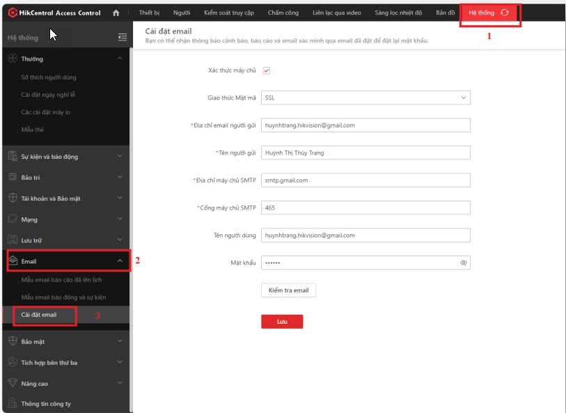 Đăng ký Email cho phần mềm HikCentral Access Control (HCAC)