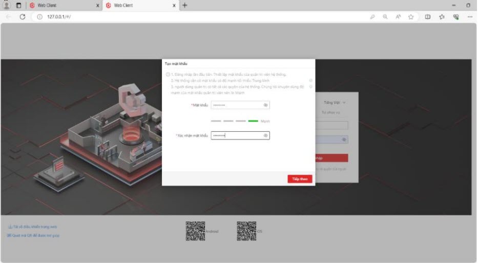 Bước 1: Sau khi cài phần mềm xong ta log web vào phần mềm để đặt mật khẩu.